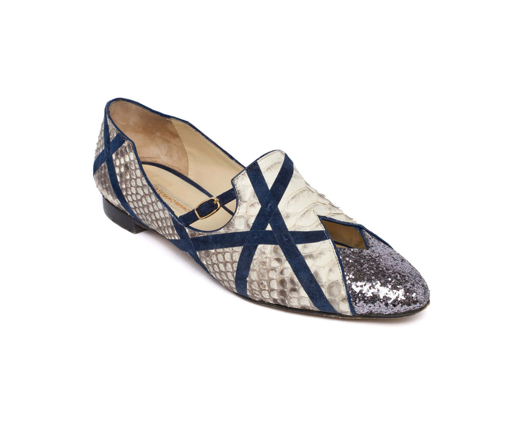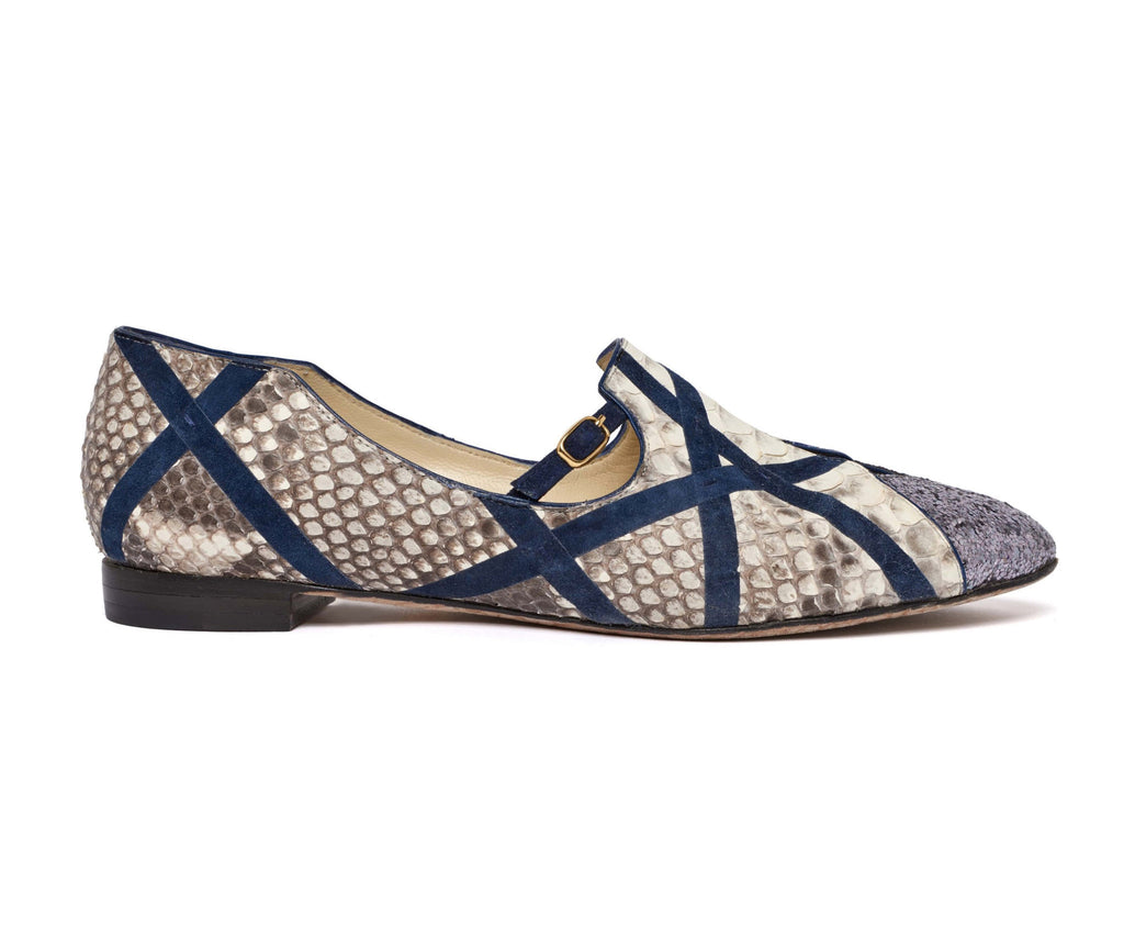 Visually striking grey genuine python flat.