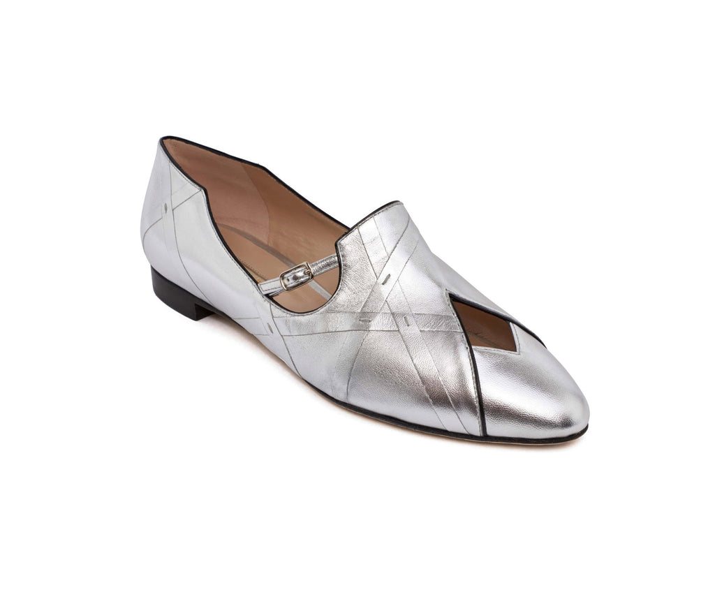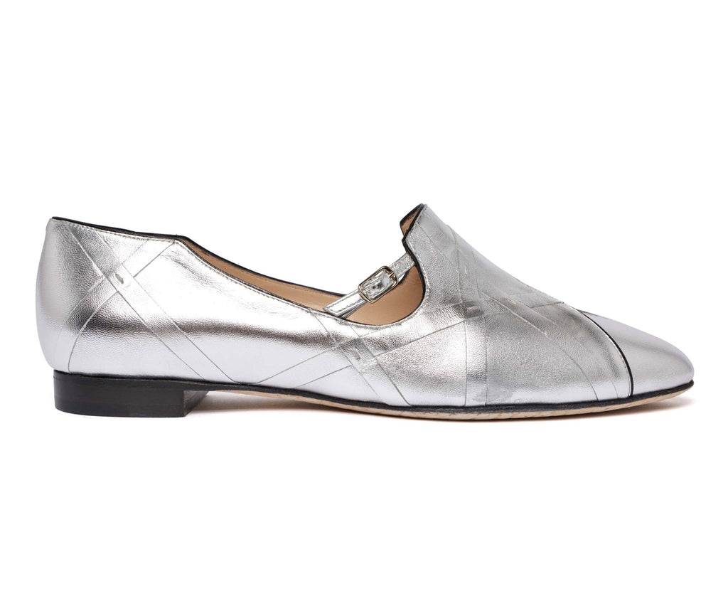 Materials• Silver metallic nappa leather asymmetric stripe details