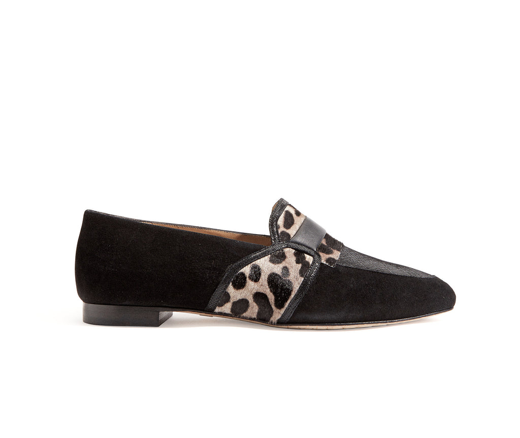 Cashmere Suede Leather, Leopard Loafer Flat.