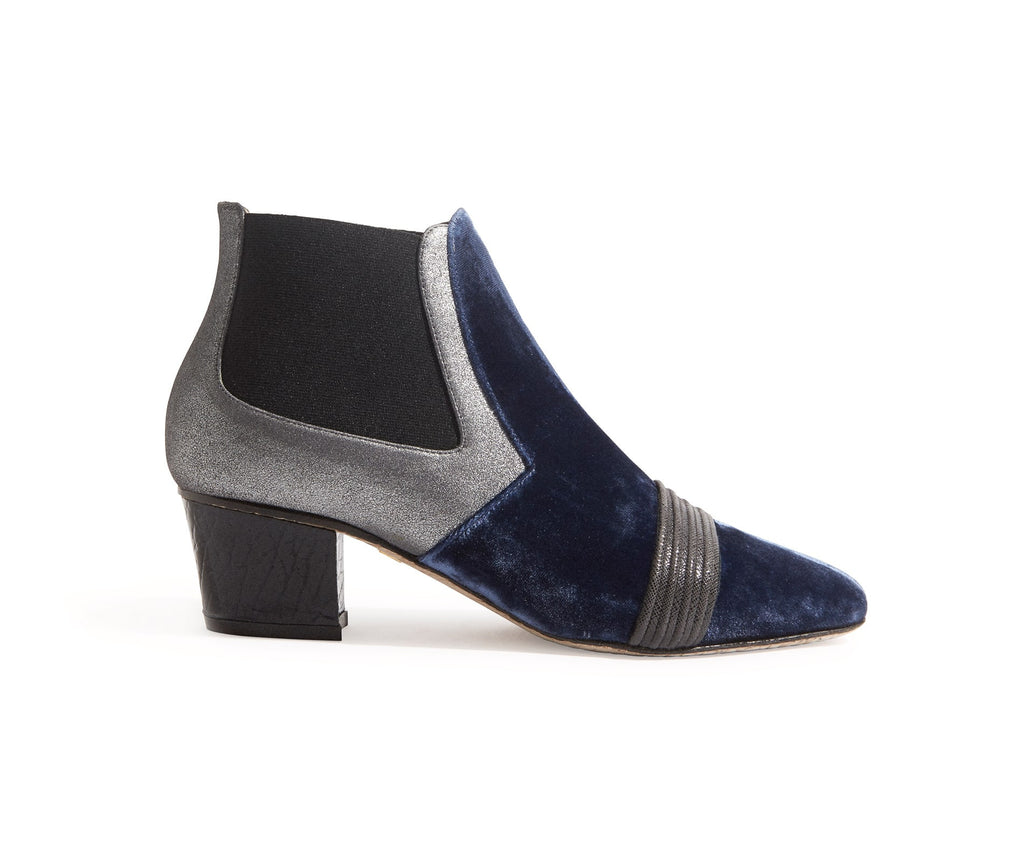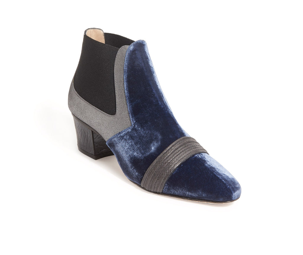 Materials• velvet blue silk (pull on block heel bootie)
